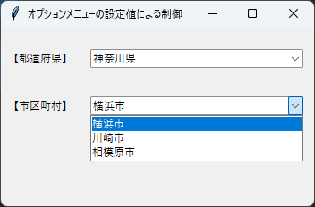 command=on_pref_changed, # 変更時に呼ばれる(選択した都道府県を渡す)