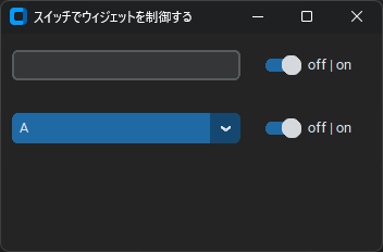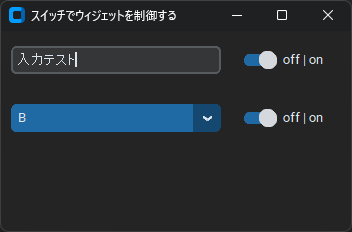 """CTkSwitch の状態に応じて、対になる入力ウィジェットを制御する